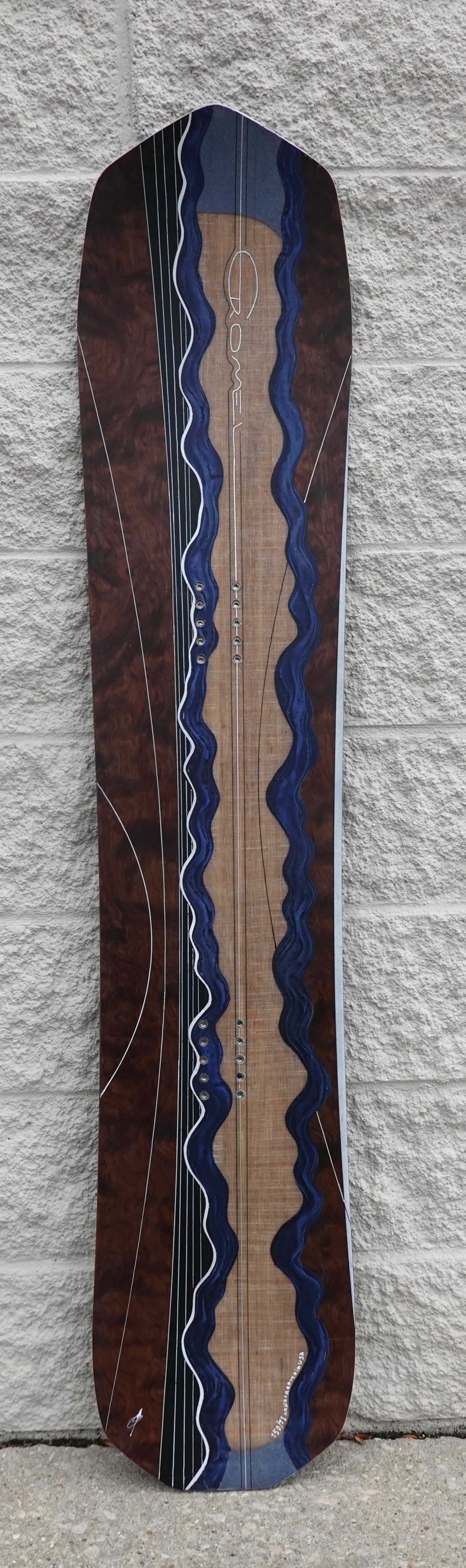 Dimensions: Length 150cm Contact 110cm Nose width 30.2cm Waist width 27cm Tail width 29.5cm Stance width 48-56cm Construction: Solid Ash vertically laminated wood core Stiffness - Soft. Board weight - extra light. Torsion carbon reinforcement. Dura Jet sintered running base. |